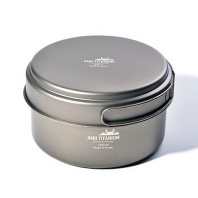 Кастрюли разного размера из титана. Крышка может служить миской или даже сковородой. Универсальная вещь, которая занимает мало места в рюкзаке и ничего не весит. Три варианта размера - для любой компании.