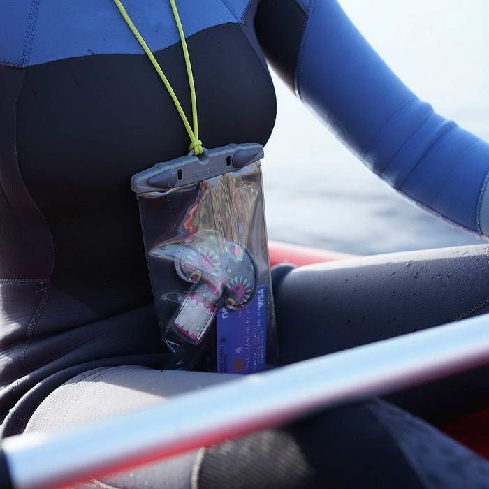 И я мок, и со мной мокли, и я падал в лужу. Хорошо, что мой телефон был в водонепроницаемом чехле AQUAPAC Clear Olympus. Чехол полностью герметичен в застегнутом виде. Защита IPX8 не пропустит песок, грязь и влагу. Даже если телефон уже в луже, и вы с прискорбием думаете как будете его доставать, то не нужно унывать. Уровень водонепроницаемости позволяет погружать телефон в чехле на длительное время. Но чтобы предотвратить падение, воспользуйтесь шнурком, который идет в комплекте.