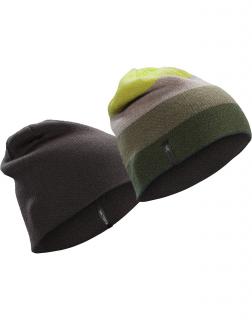 Двухсторонняя шапка, полосатая с одной стороны и односторонняя с другой.
