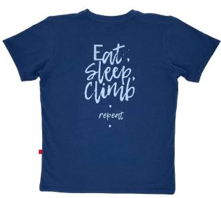 Удобная хлопковая футболка для тренировок, прогулок и путешествий! На спине надпись Eat, Sleep, Climb. repeat. Футболка изготовлена из хлопка высокого качества пенье с добавлением эластана. Приятна на ощупь и удобна в носке.