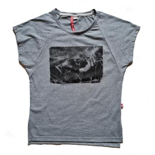 Хлопковая футболка для скалолазания и активного образа жизни. Сшита из хлопка с небольшим добавлением эластана и меланжевым эффектом. Футболка хорошо дышит и в меру тянется — то, что нужно на скалах. Принт сделан водными красками на основе фотографии прохождения боулдеринг-маршрута в ЮАР.
