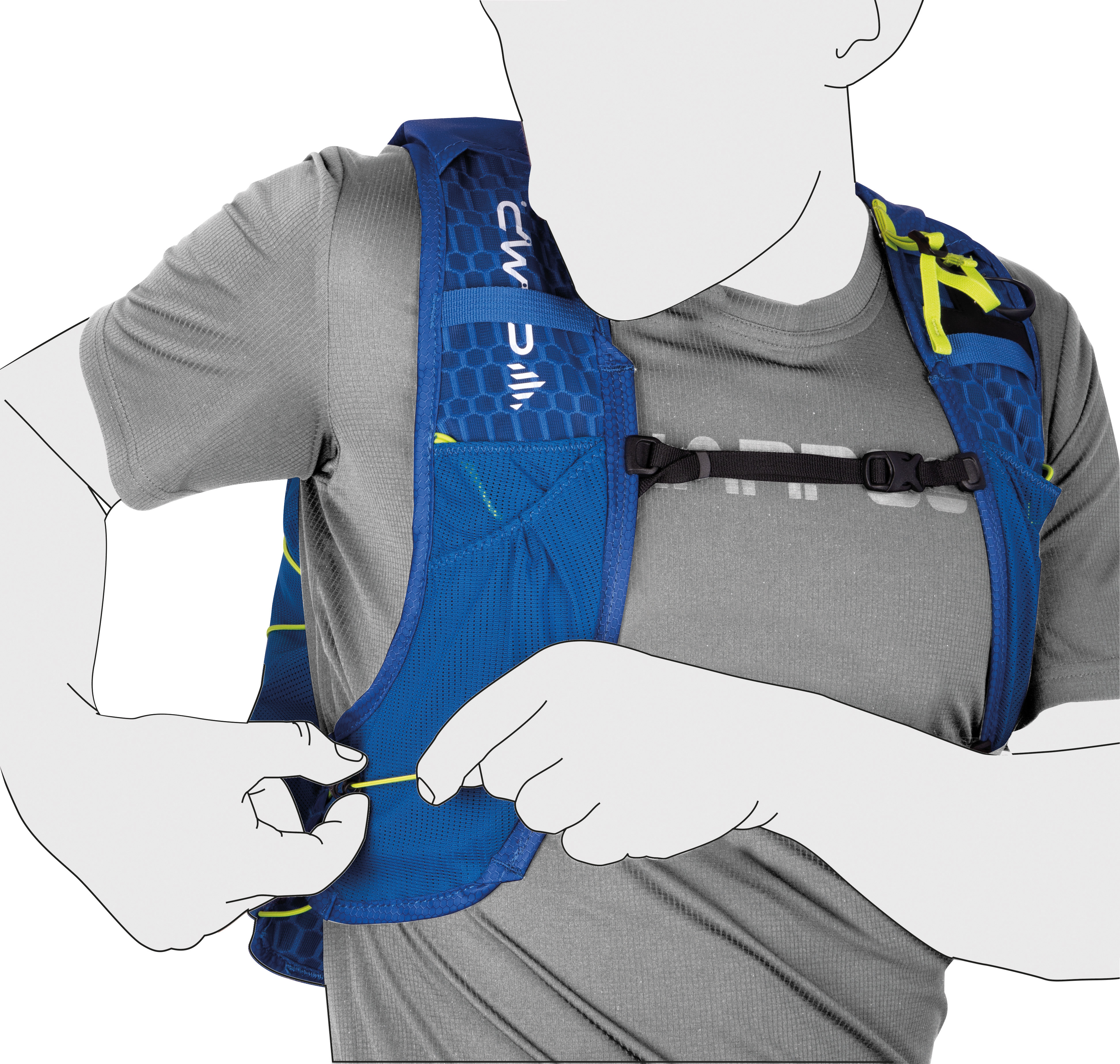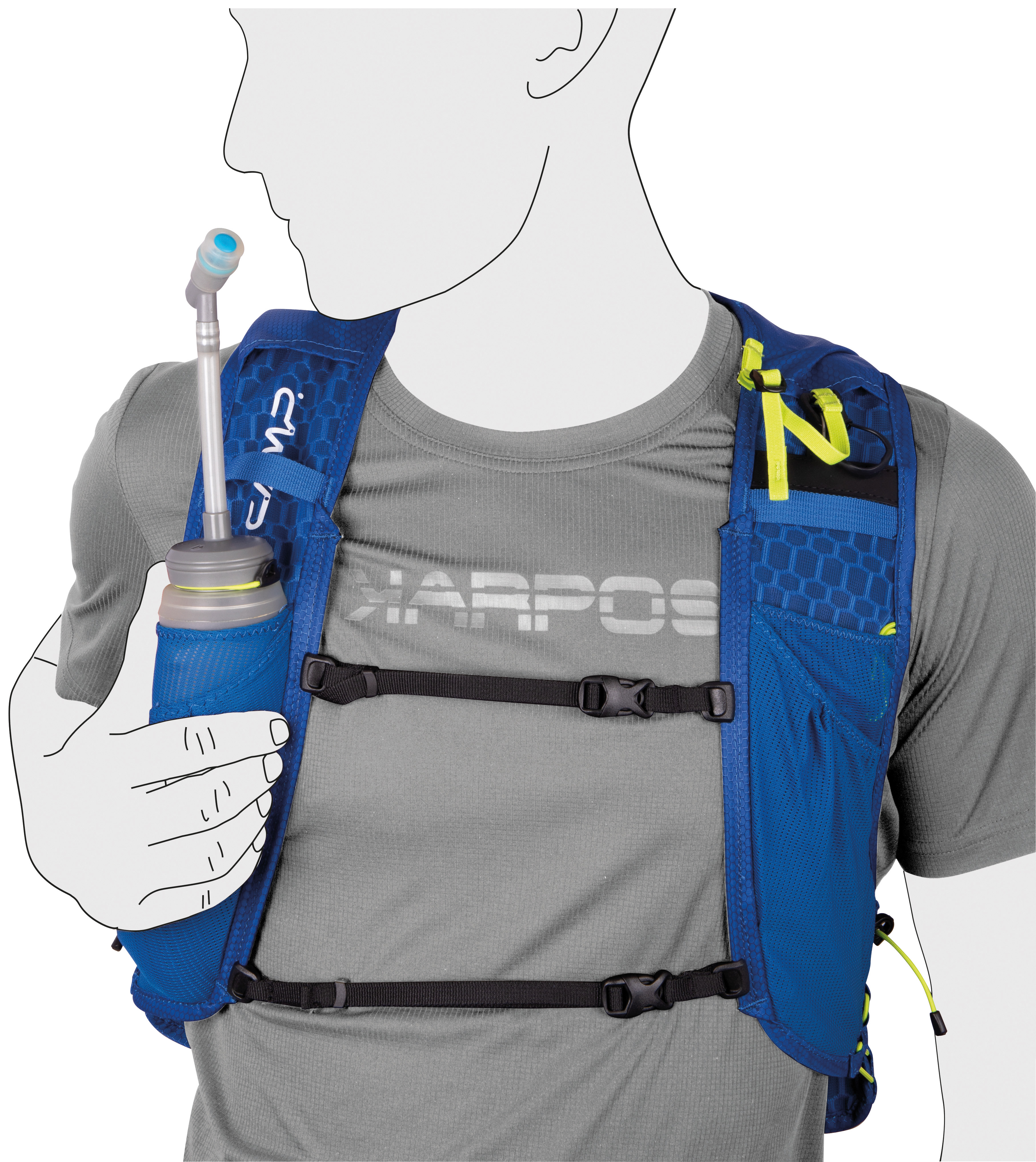 • Два мягких держателя для фляжек на плечевых ремнях с эластичными шнурами для удержания бутылок на месте