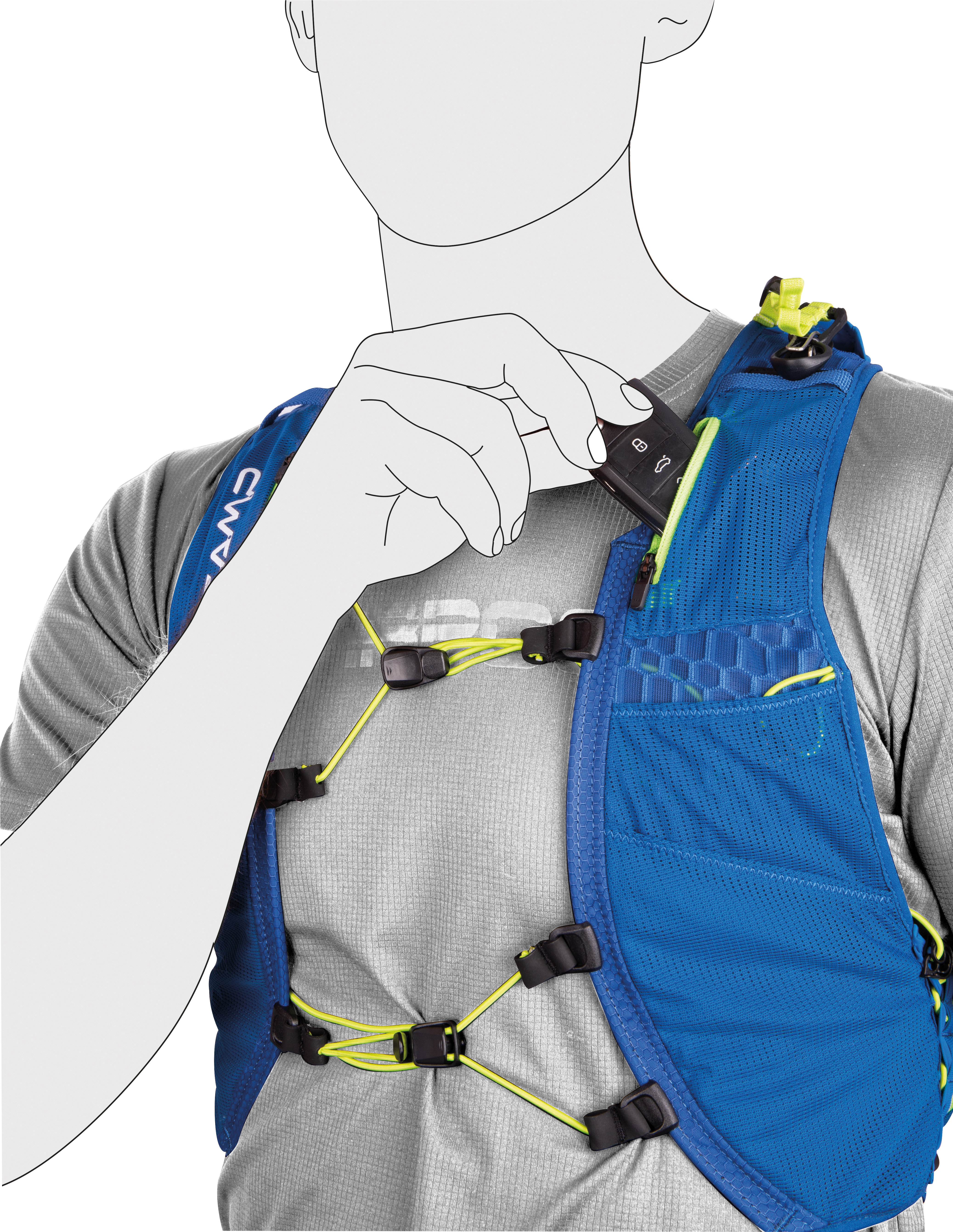 В таком жилете главное - организованность. Многочисленные карманы обеспечивают мгновенный доступ к воде, еде и другим важным мелочам. Мягкая, вентилируемая, влагоотводящая 3D-сетка в сочетании с мягкой окантовкой в любом месте, где жилет соприкасается с телом, обеспечивает превосходный комфорт даже на голой коже. Инновационная система переноски треккинговых палок, которая позволяет прикреплять и снимать палки, не останавливаясь и не снимая рюкзак. В системе используются эластичные шнуры, которые крепятся к стойкам и затем могут быть закреплены карабином (входит в комплект). Как только палки скреплены вместе, карабин крепится к петле на задней левой стороне рюкзака, а затем концы палок фиксируются ремнем X-Press на правом плече для очень надежного и быстрого крепления.