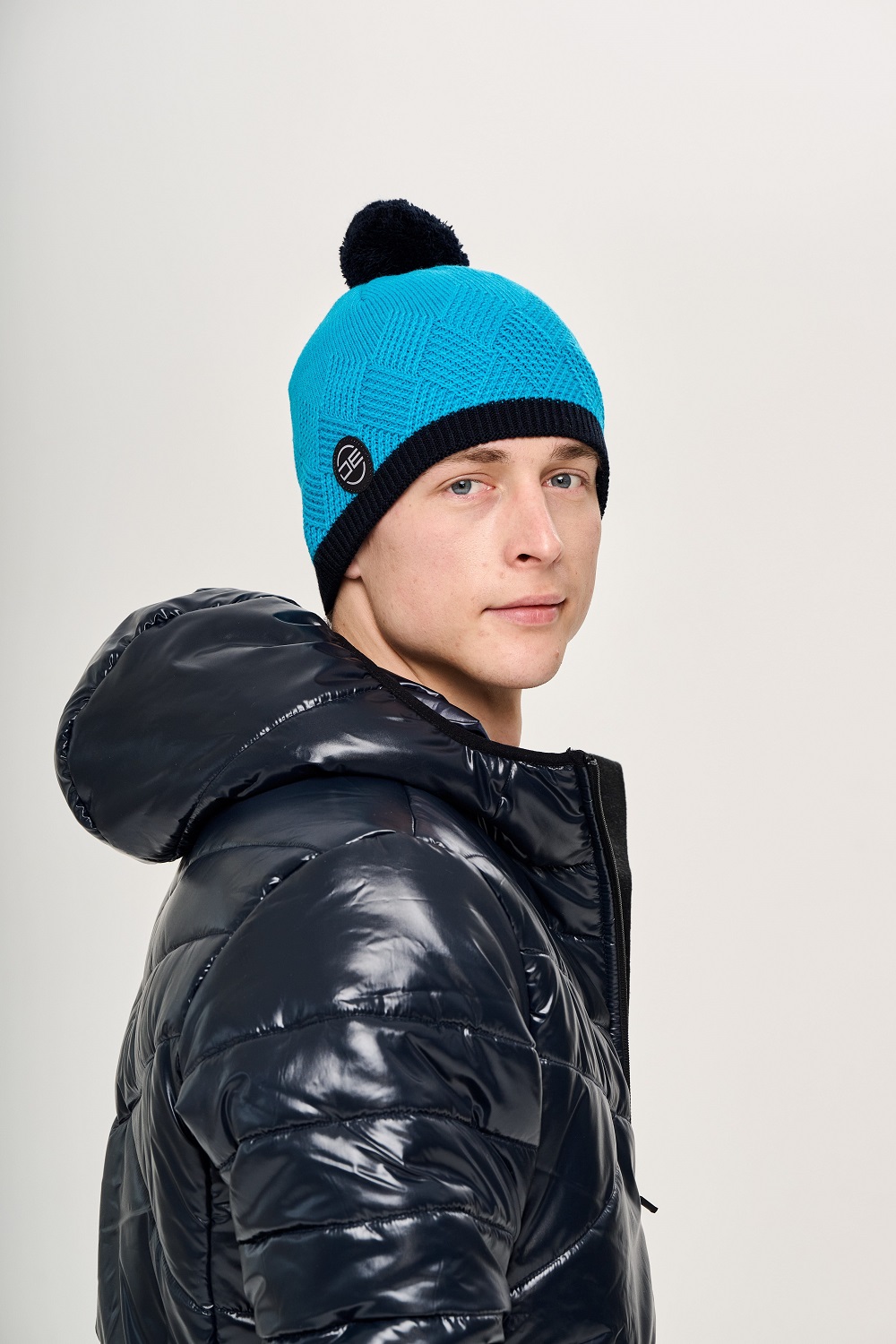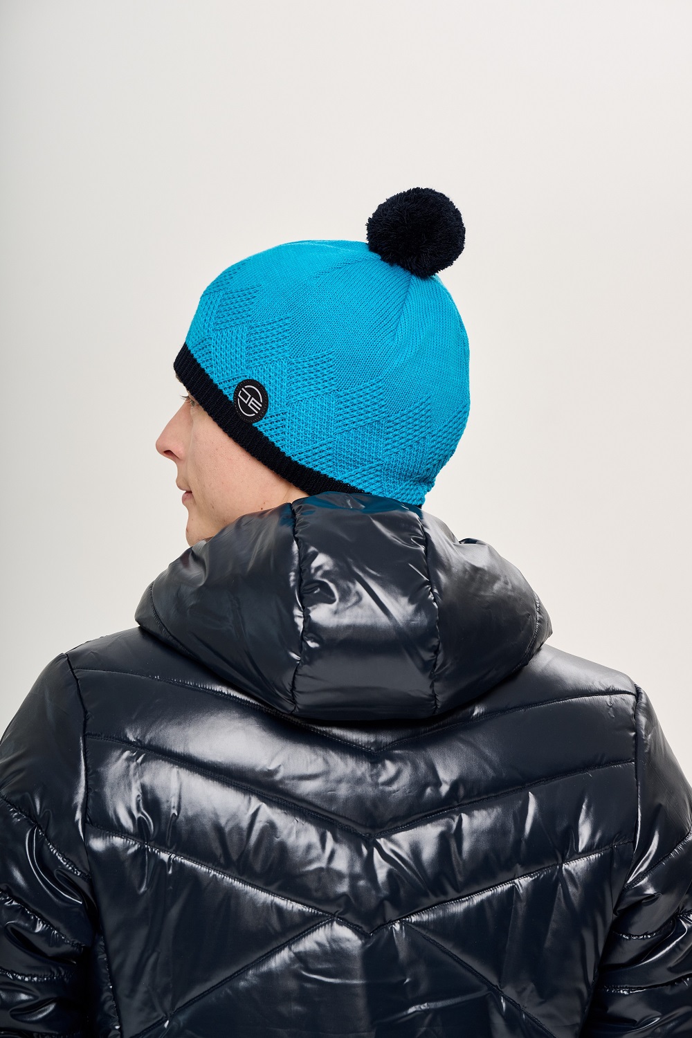 Вязаная шапка c помпоном для спорта и активного отдыха DE Ромбы. Связана в два слоя.