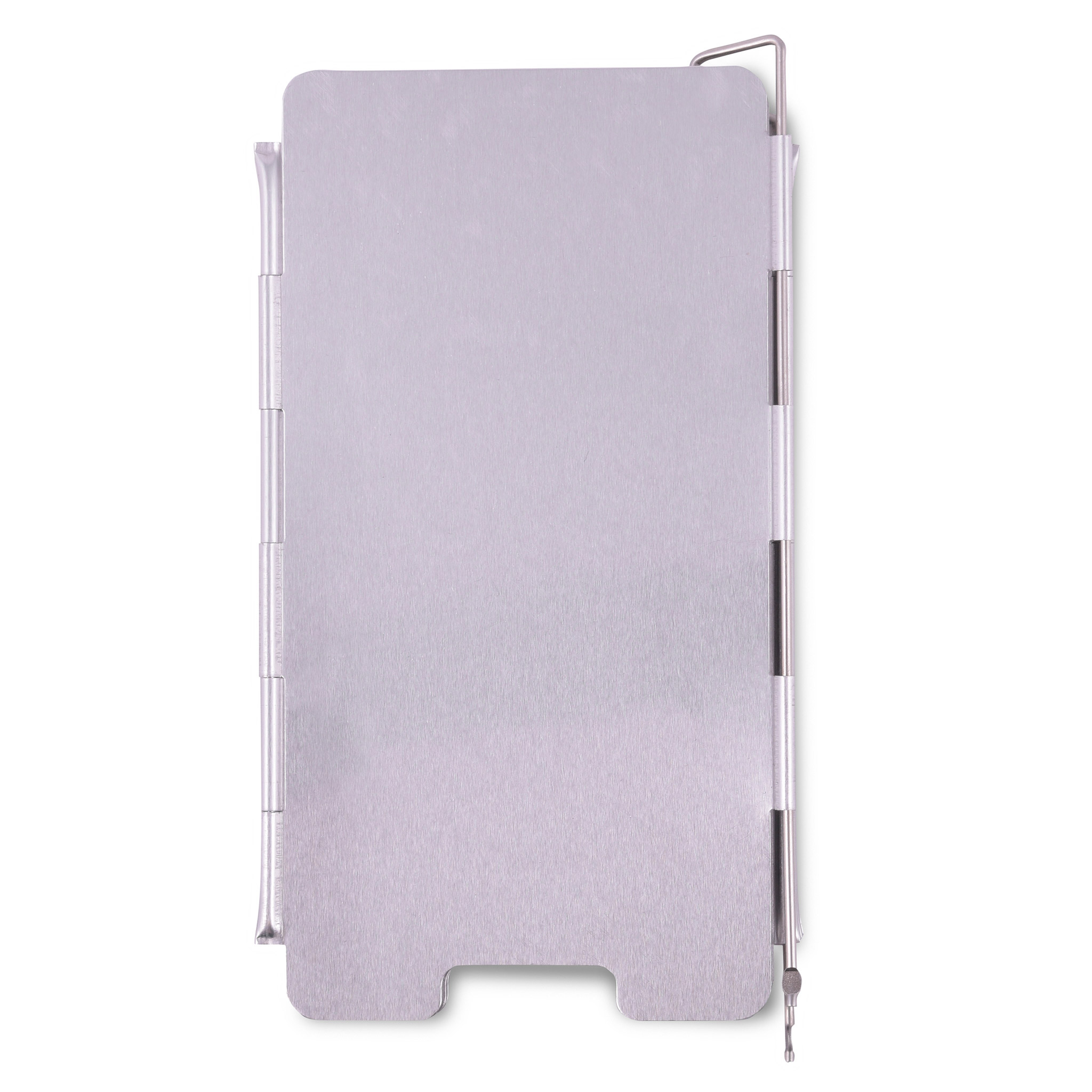 Он эффективно защищает пламя от ветра, что помогает снизить теплопотери и предотвращает задувание огня. Конструкция состоит из восьми алюминиевых пластин, соединенных металлической проволокой, что позволяет легко складывать устройство и экономить место при транспортировке. Для удобства в комплект входит мягкий чехол для переноса и хранения.