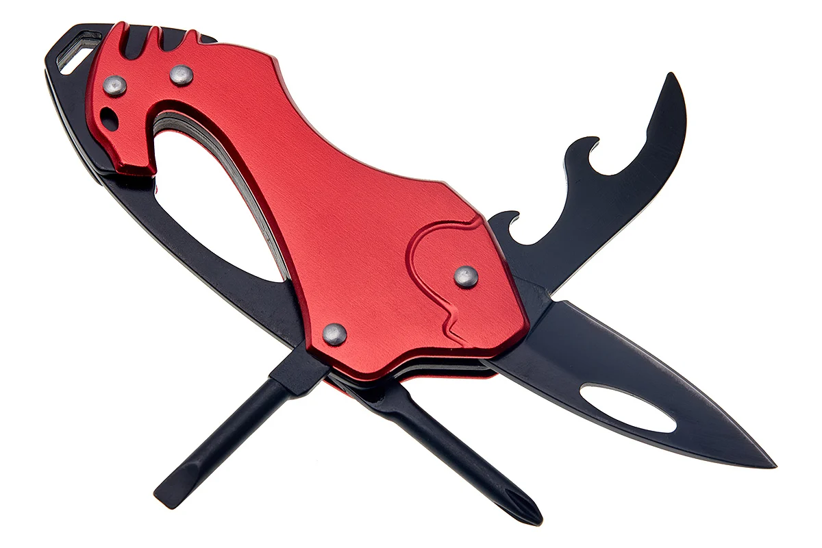 - Инструменты: нож, отвертка SL, отвертка PH, открывалка для бутылок, открывалка для консервных банок