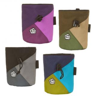 Большой мешочек для магнезии из контрастных лоскутков. Сбоку резинка для крепления щетки, ремешок в комплекте.