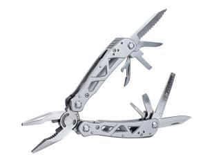 Ganzo G212 — надежный полноразмерный мультитул, который пригодится в повседневной жизни, если есть необходимость что-либо починить. Отличный подарок для туристов, путешественников, охотников, рыбаков и других любителей отдыха на природе. Изготовлен из стали марки 440C, основные преимущества которой прочность, устойчивость к коррозии и износоустойчивость. Одно из преимуществ данной модели — мощные подпружиненные плоскогубцы со встроенными кусачками и ребристой поверхностью для захвата круглых предметов. В рукоятках мультитула размещаются два ножа: с прямой и серрейторной режущей кромкой, шило, линейка, открывалки для банок и бутылок, одна крестовидная и две плоских отвертки, девять сменных насадок для отвертки и магнитный переходник для них. Все насадки хранятся в отдельных гнездах общего органайзера. В комплект также входит долговечный тканевый чехол для хранения и переноски мультитула.