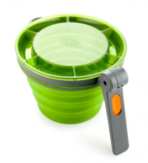 Складная кружка/миска объемом 650 мл. Ее здорово взять в поход или принести в ней обед на работу. Внутри кружки есть градуировка, что удобно при употреблении сублиматов: можно четко рассчитать объем воды. Также кружку можно использовать как мерную посуду и черпак. Прозрачная крышка плотно вставляется в кружку и не протекает. Пластиковая ручка удобно складывается внутрь или отстегивается за ненадобностью. Кружка сделана из прочного нейлона, складывается до 4 см в высоту.