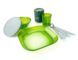 Удобный набор посуды, рассчитанный на одного человека. Незаменим в походе, на охоте или рыбалке. Состоит из ложки, вилки, ножа, тарелки для супа с крышкой, двух стаканов и большой тарелки. Экологичен, изготовлен из полипропилена, не содержащего бисфенол А, который также на 100% пригоден для вторичной переработки. Глубокая тарелка закрывается герметично крышкой и сохранит в целости остатки пищи. У кружки есть термоизоляционный чехол и крышка Sip-It, которая сохранит напитки горячими и предотвратит разлив.