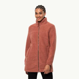 Уютное женское флисовое пальто сшито из мягкой флисовой ткани, имитирующей овечью шерсть. С внутренней стороны есть небольшой начес, поэтому пальто весьма теплое. Рост модели 176 см, на ней размер S.