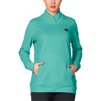 Женственный пуловер из материала, эффективно сочетающего натуральный органический хлопок с функциональным синтетическом волокном. Благодаря ворсистой внутренней поверхности материал хорошо выводит влагу, и в тоже время неплохо греет. Пуловер можно использовать для повседневной носки, а также для прогулок и непродолжительных вылазок на природу.