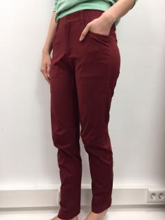 Женские скалолазаные штаны. Ткань брюк тянется в 4 стороны, держит небольшой дождь и ветер, и быстро сохнет. Такие штаны подойдут для скалолазания, походов в теплое время года и ношения в городе. Штаны застегиваются на молнию, липучку и пуговицу. Пояс представляет собой широкую резинку. Есть шлевки для ремня или подвешивания мешочка с магнезией. Справа есть петелька для щеточки для зацепов. Длину брюк можно укоротить до 3/4, подвернув низ и закрепив на пуговицу. На фото штаны размера М. Рост модели 170 см, вес 54 кг.