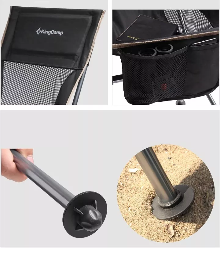 Складное алюминиевое кресло для отдыха на природе. Кресло собирается и разбирается в мгновение ока. Специальные кольца на ножках не дают креслу проваливаться в песок и мягкий грунт.