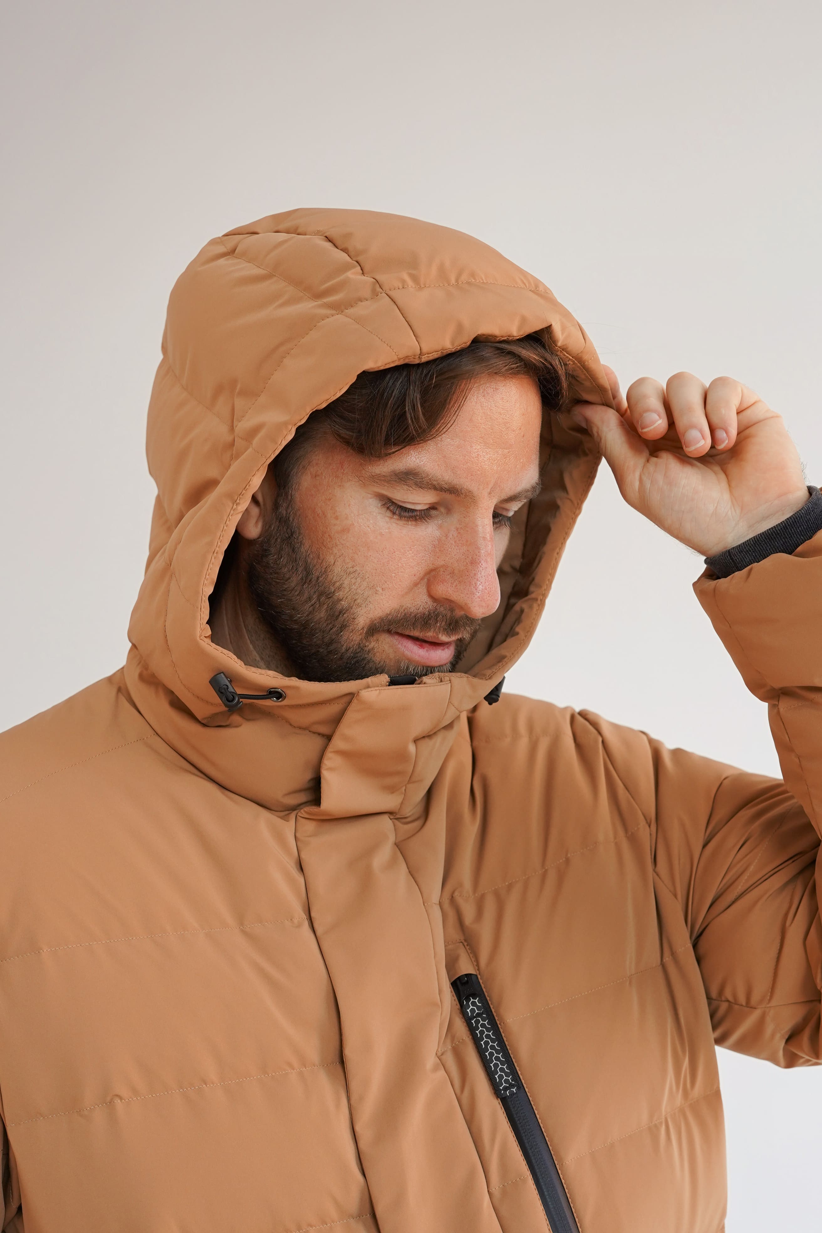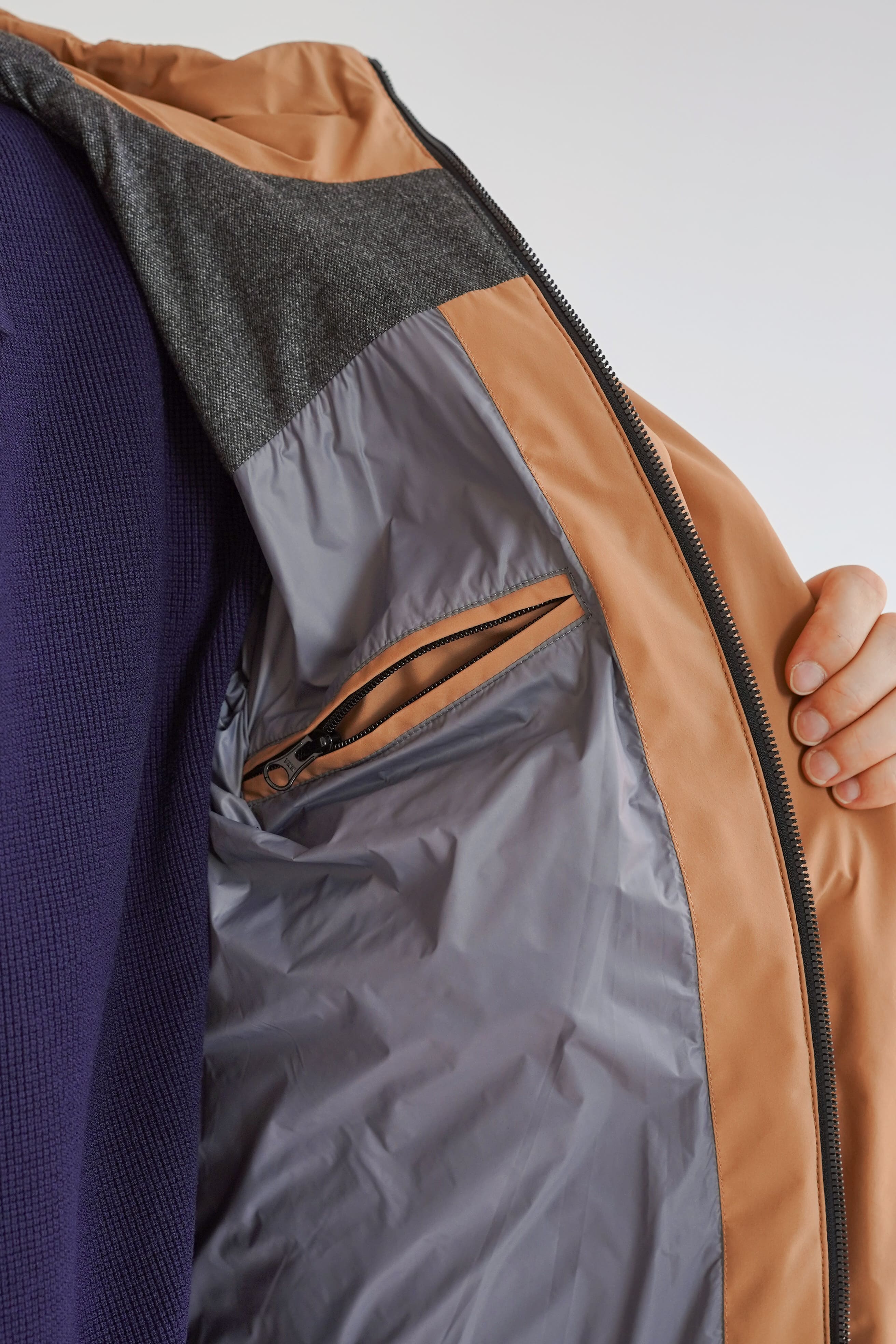 Для плечевых зон, испытывающих наибольшие нагрузки, использован пуховой пакет меньшего объема, но с увеличенной набивкой и с синтетическим утепляющим материалом Isosoft, что делает его прочным и теплым.