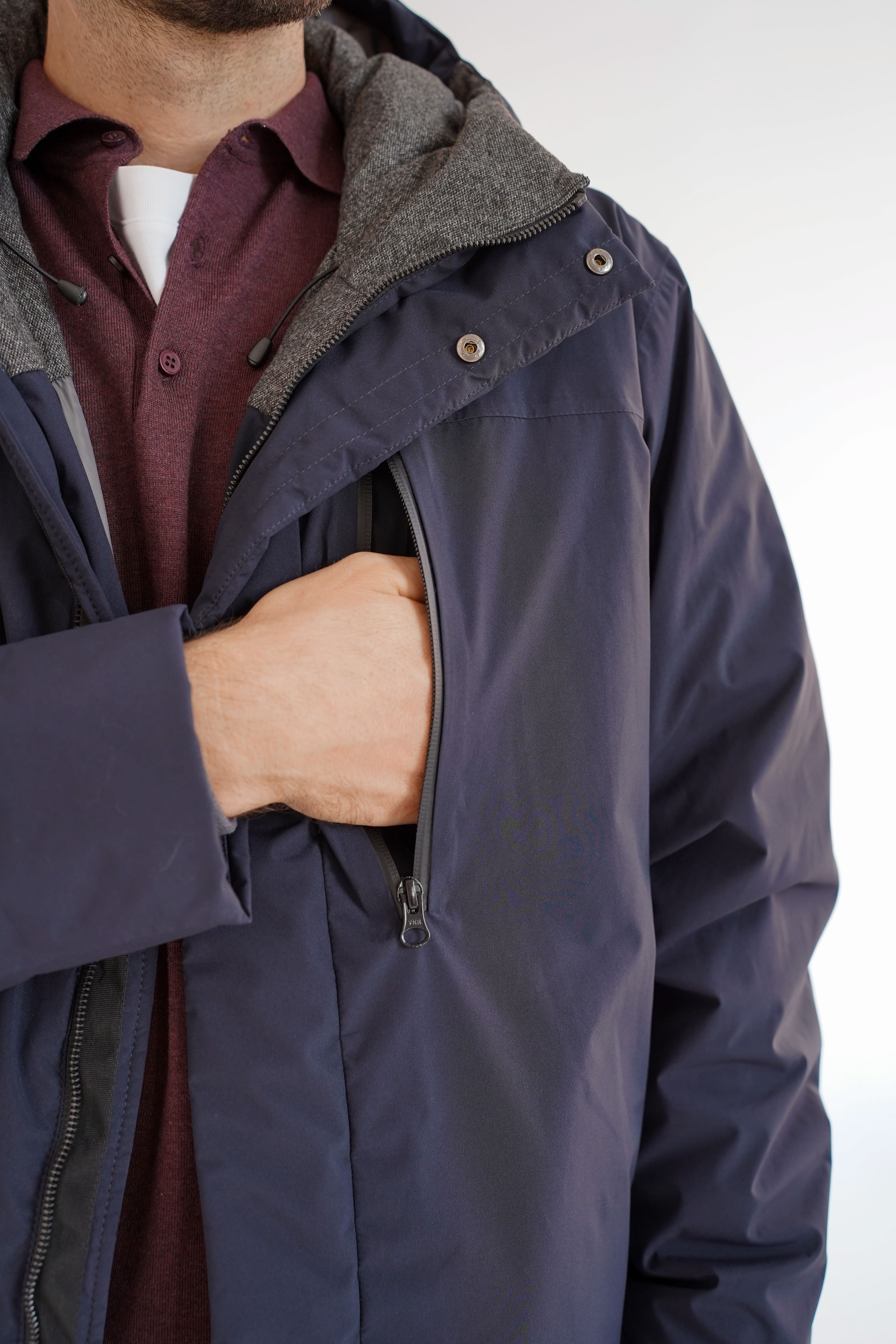 Создана для тех, кто ценит комфорт и защиту в любую погоду. Влагоотталкивающая мембранная ткань ProTec с гидрофобной пропиткой 10.000/10.000 гарантирует полную защиту от дождя, снега и мокрого снега, сохраняя при этом отличную воздухопроницаемость. Внутри — гусиный пух FP700+ с гидрофобной обработкой, обеспечивающий тепло без лишнего объема. Технология теплых швов создает надежный барьер против холода, а смещение швов повышает эффективность утепления.