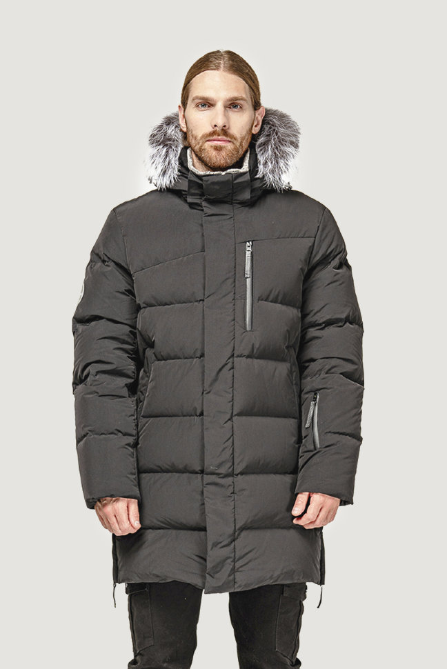 Куртка Норман утеплена гусиным пухом, в верхней части куртки изнутри дополнена мягким ворсистым флисовым материалом для большего тепла и комфорта. Данная модель имеет опушку из меха енота, что также добавляет тепла и защиту от буранов. Внешняя нейлоновая ткань имеет пропитку от воды и грязи.