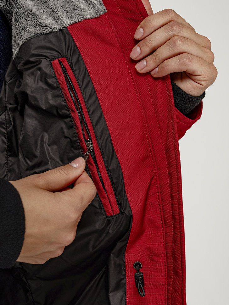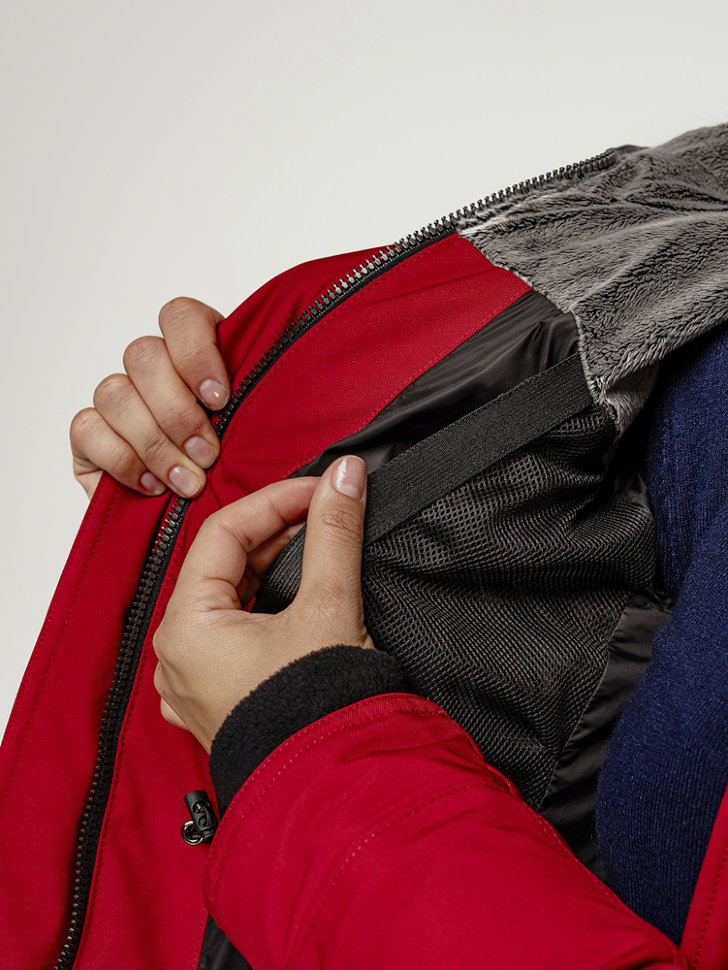 - Утеплённый мехом Velboa регулируемый капюшон с возможностью пристегнуть опушку из натурального меха северного енота