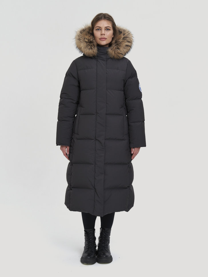 - Утеплённый регулируемый съёмный объемный капюшон с возможностью пристегнуть опушку из натурального меха северного енота