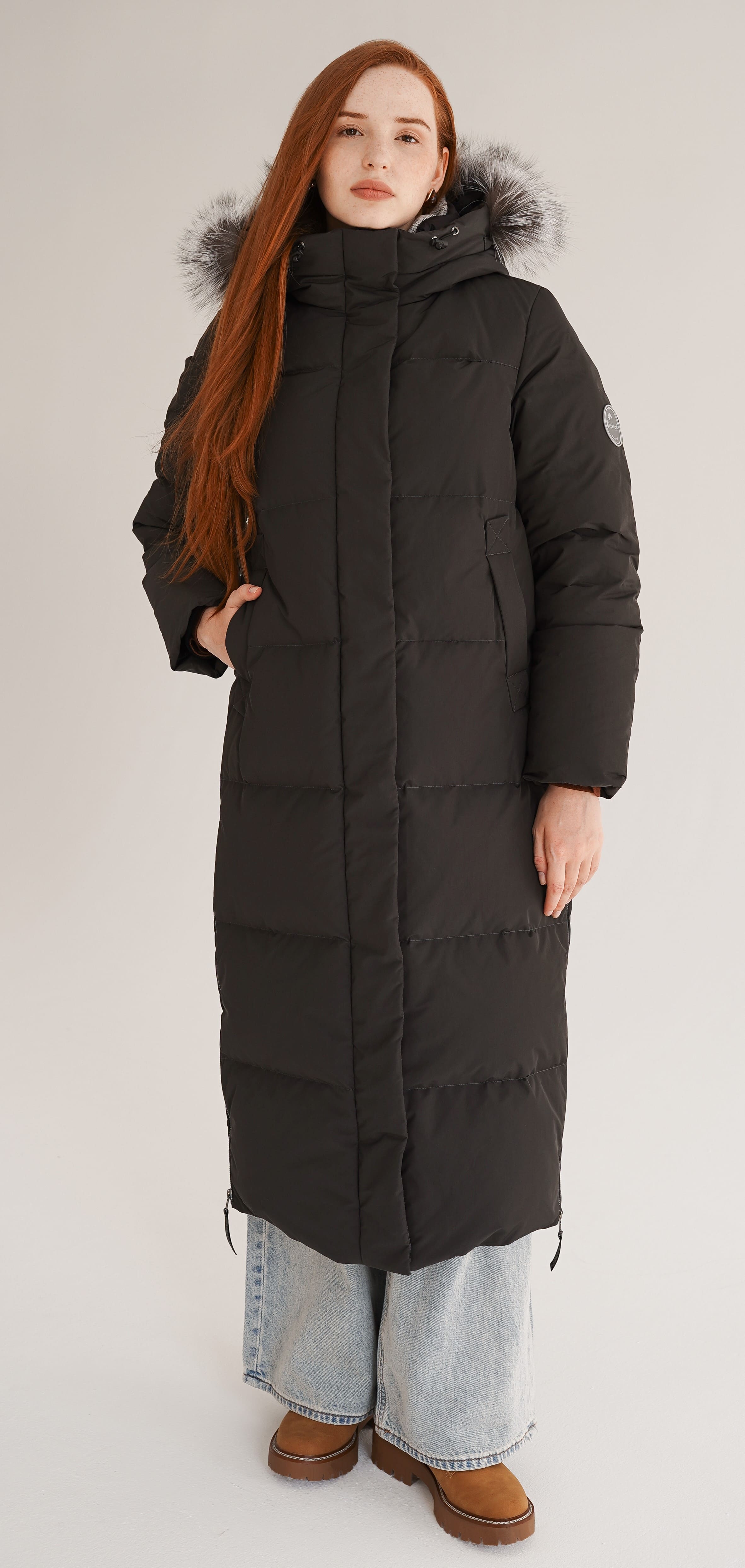 - Утеплённый регулируемый съёмный объемный капюшон с возможностью пристегнуть опушку из натурального меха чернобурки