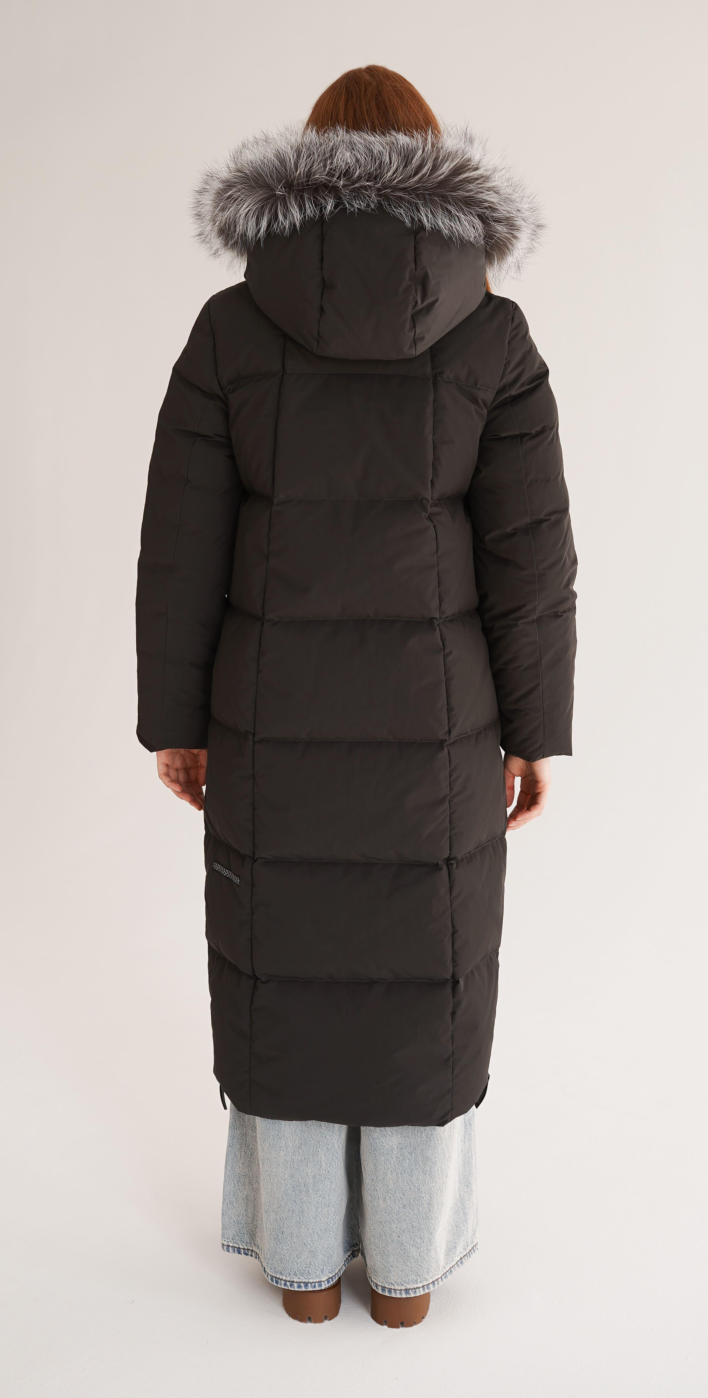 Утеплено пальто натуральным гусиным пухом. На плечах и спине вставки мягкого материала Thermium. Утепленный внутри искусственным мехом капюшон с внешней части обрамлен опушкой из натурального меха чернобурки. Не забываем и про ручки, их можно спрятать в теплых карманах с искусственным мехом. Верхняя нейлоновая ткань имеет высокую износостойкость, и не пропустит осадки и грязь.