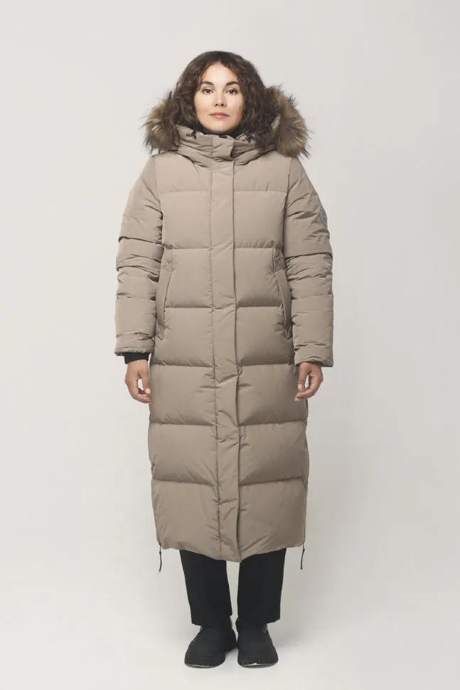 Пуховое пальто Сортавала от российского бренда LAPLANGER. Это пальто готово укрыть вас от сильных морозов суровой зимы как в городе, так и за его пределами. Утеплено пальто натуральным гусиным пухом. На плечах и спине вставки мягкого материала Thermium. Утепленный внутри искусственным мехом капюшон с внешней части обрамлен опушкой из натурального меха северного енота. Не забываем и про ручки, их можно спрятать в теплых карманах с искусственным мехом. Верхняя нейлоновая ткань с мембраной имеет высокую износостойкость, и не пропустит осадки и грязь.