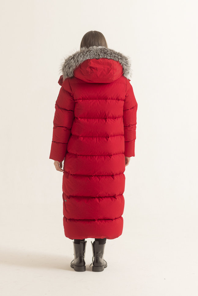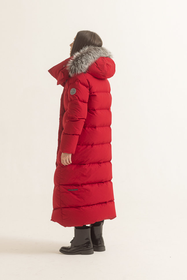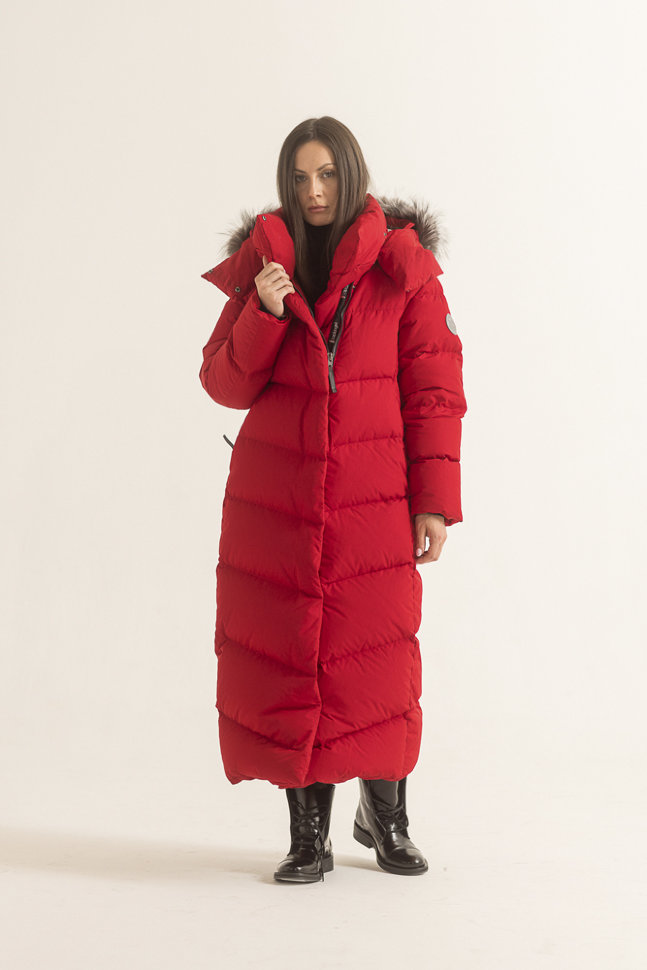 Женское пальто LAPLANGER Суоми — идеальный вариант для холодной зимы. Благодаря верхней ткани с водо-грязеотталкивающей пропиткой, вы можете не беспокоиться о капризах погоды. За тепло отвечает натуральный гусиный пух высокого качества. Внутренние карманы и капюшон утеплены материалом Velboa. Регулируемый по объёму капюшон украшен тёплой опушкой из меха северного енота. Внутри есть лёгкая ветрозащитная юбка, которую можно затянуть для дополнительной защиты от холода.