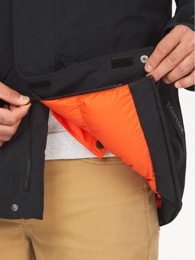 Неотъемлемая часть парки — мембрана GORE-TEX, которая работает как невидимый щит: не пропускает влагу снаружи, но при этом позволяет коже дышать. Каждый шов тщательно проклеен, создавая абсолютную защиту от промокания даже в самый сильный ливень или мокрый снег. Элитный утиный пух с показателем 700 FP наполняет куртку, создавая невесомый, но невероятно теплый барьер между вами и зимней стужей. При этом парка остается удивительно компактной и легкой. Каждая деталь продумана до мелочей. Мягкий воротник с инновационной подкладкой DriClime нежно заботится о вашей коже, отводя лишнюю влагу и предотвращая раздражение. Съемный капюшон становится надежным стражем головы и плеч, а фиксированная снежная юбка не дает холодному воздуху и снежным кристаллам проникнуть внутрь. Регулируемые манжеты на липучках VELCRO надежно защищают от задувания, а специальные «теплые» карманы для рук становятся уютным убежищем для замерзших ладоней. Внутренний шнурок позволяет точно настроить силуэт по талии, создавая идеальную посадку. Внушительные размеры куртки и продуманный крой позволяют носить ее даже поверх нескольких слоев одежды.