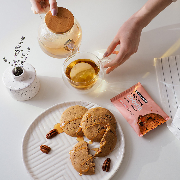 Протеиновое печенье R.A.W.LIFE Карамельный пекан — вкусный высокобелковый перекус перед или после тренировки.