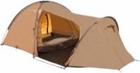 Большая комфортная палатка для кемпинга. Палатка обладает простым в установке и исключительно прочным каркасом. Основная особенность модели: внутренняя палатка и тент устанавливаются одновременно. В модели продуманы два входа и два тамбура, один из которых отличается большими размерами. Конструкция дополнена вентиляционными окнами на молнии, входы внутренней палатки продублированы противомоскитными сетками.
