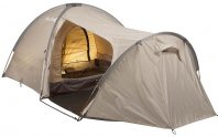 Большая комфортная палатка для кемпинга. Палатка обладает простым в установке и исключительно прочным каркасом. Основная особенность модели: внутренняя палатка и тент устанавливаются одновременно. В модели продуманы два входа и два тамбура, один из которых отличается большими размерами. Конструкция дополнена вентиляционными окнами на молнии, входы внутренней палатки продублированы противомоскитными сетками.