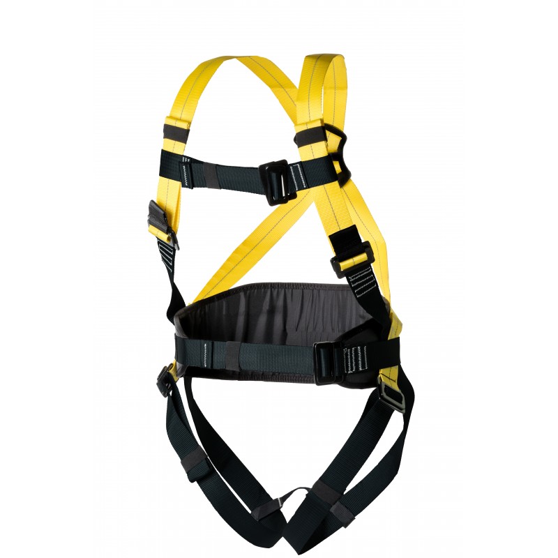 Регулируется по размеру пятью пряжками: две для плечевых ремней, две для ножных охватов и одна грудная. Верхние и нижние ленты имеют разные цвета (верхние - со световозвращающей нитью), что облегчает правильное надевание привязи. Привязь рассчитана на человека с размером одежды до 56 (включая зимнюю одежду).