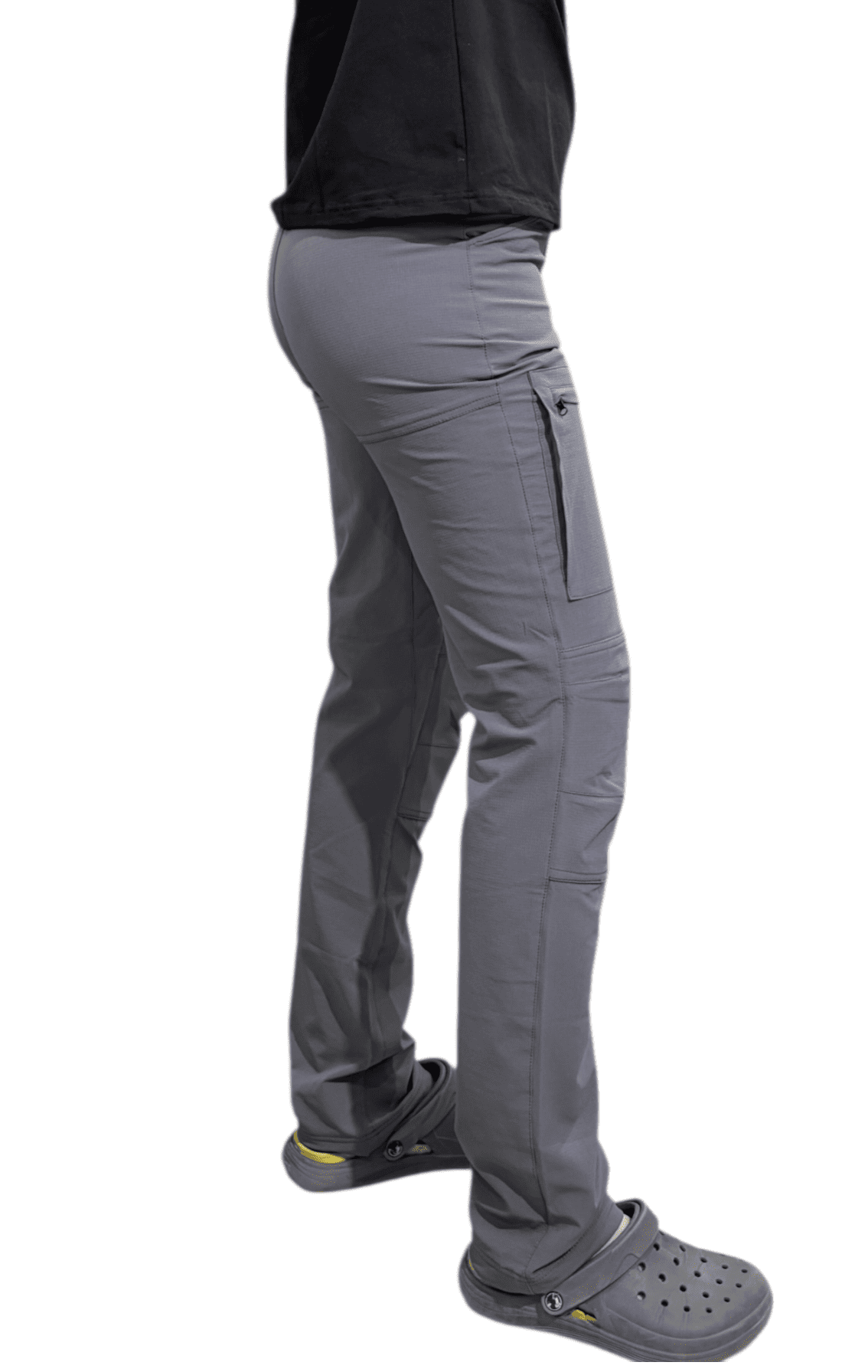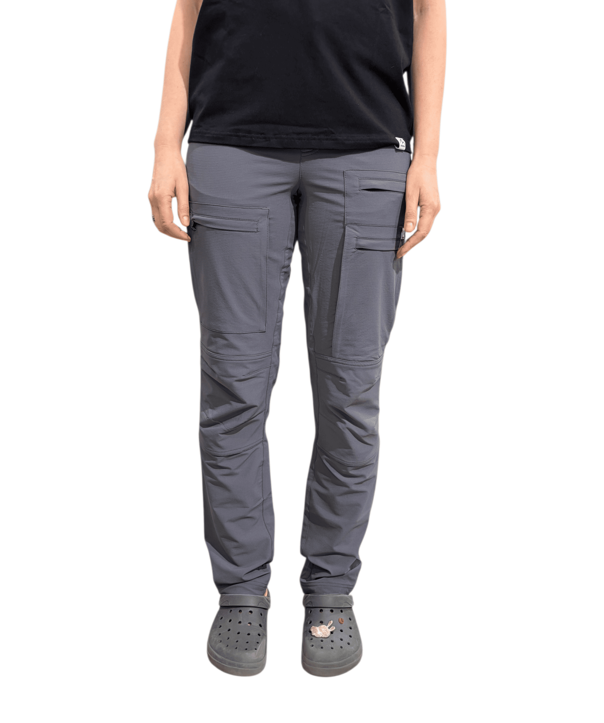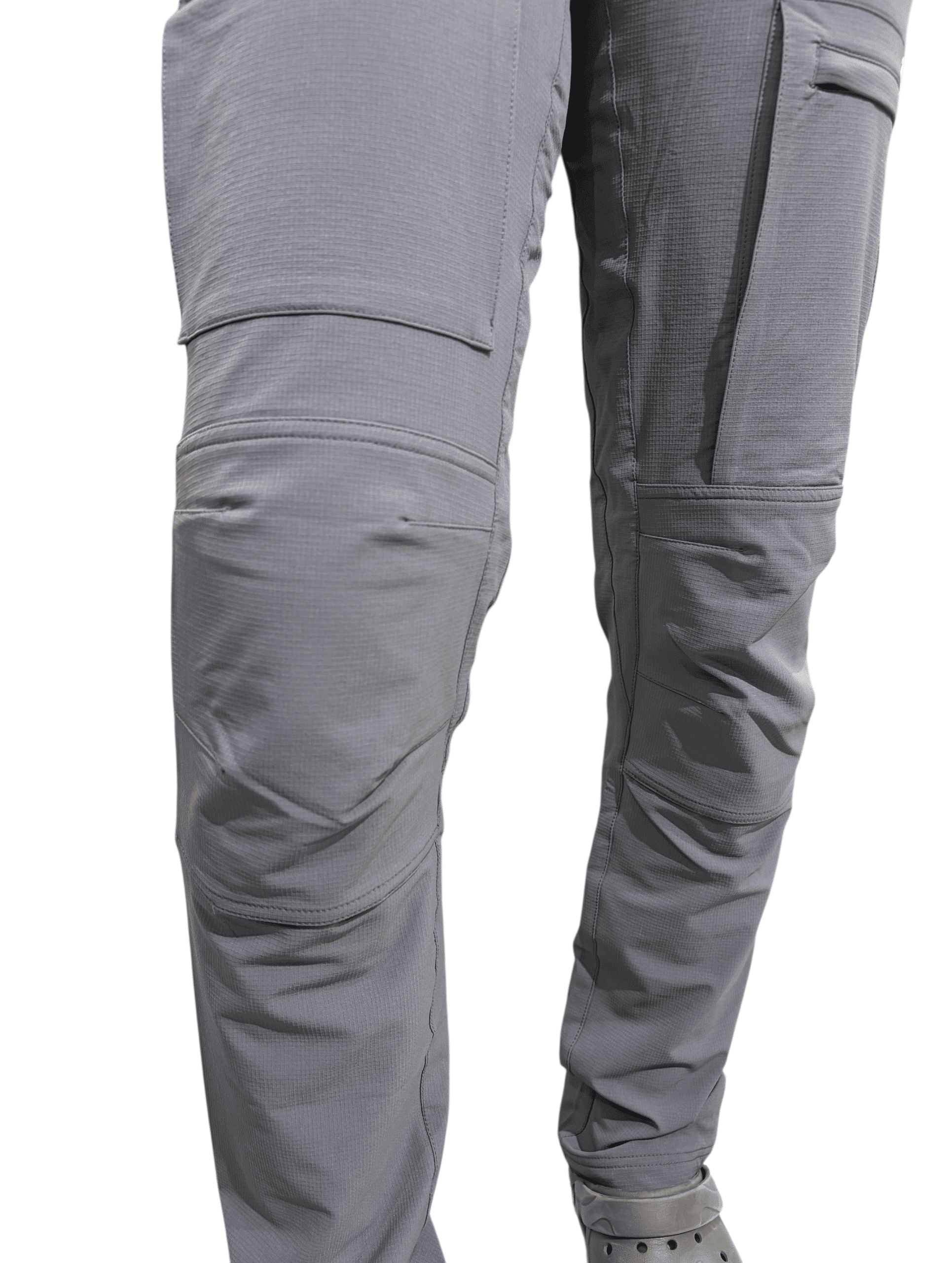 Брюки сшиты из легкой ткани, однако благодаря плетению рипстоп устойчивы к истиранию и разрывам. Это же плетение придает ткани интересную вафельную текстуру. Помимо этого ткань быстро сохнет, так что можно не бояться промокнуть на маршруте.