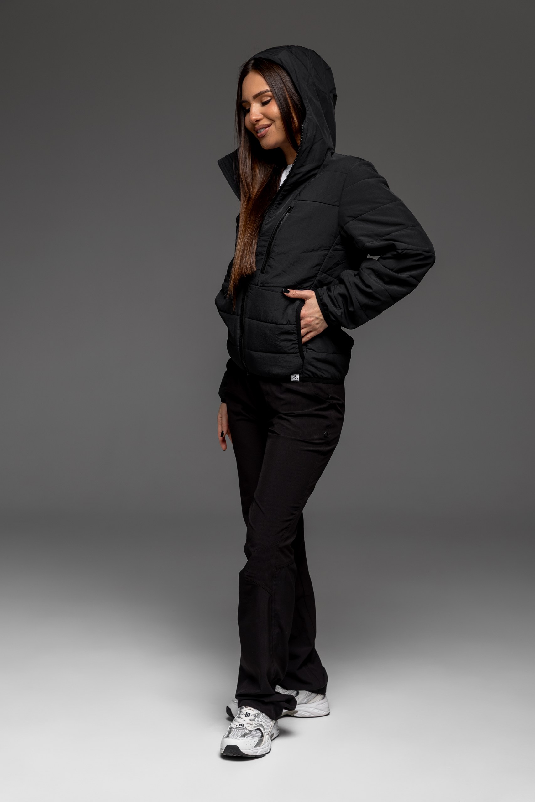 Куртку легко упаковать в рюкзак или собственный карман. Капюшон регулируется шнурком, не перекрывая обзор.