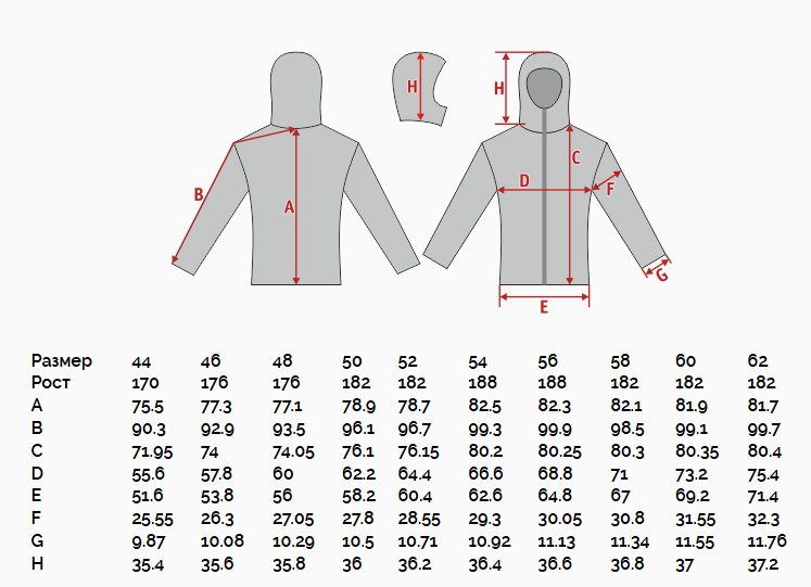 Некоторые модели размеров 60 и 62 изготовлены с мембранной WindGuard Stretch с показателями: