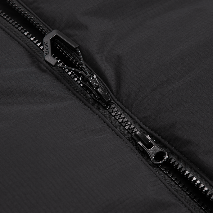 - Центральная двухзамковая молния с внутренней теплой (без сквозного шва) планкой