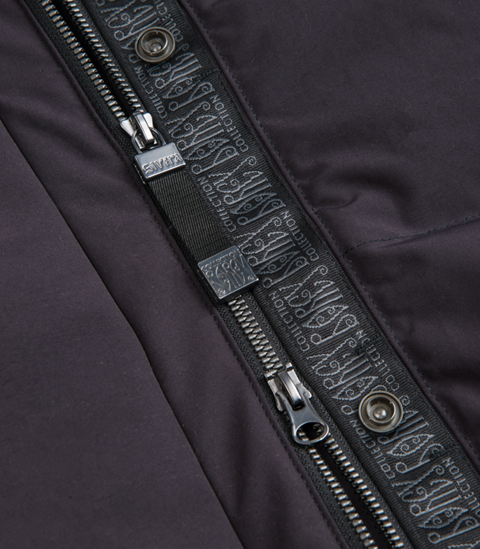 - Центральная двухзамковая молния с внешней на кнопках и внутренней ветрозащитными планками