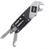 Уникальный мультиинструмент с разводным ключом. Кроме того в наборе идет сиррейторный нож, битодержатель и режущий крюк. Битодержатель имеет намагниченный корпус, к нему подойдут любые биты стандартного размера. Мультиинструмент выполнен из нержавеющей стали, он прочен и компактен. Легко помещается в карман, рюкзак или сумку.