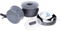 Набор посуды с рифлёным дном. Благодаря уникальному строению дна этой посуды, Вам больше не придется искать идеально ровную поверхность для готовки, на них можно готовить при наклоне до 45 градусов. Рифлёное дно равномерно распределяет все тепло от горелки по дну посуды, что в свою очередь поможет Вам намного быстрее нагреть пищу и уменьшить потребление топлива.
