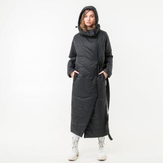 Утеплённое женское пальто для городской зимы. Очень лёгкое, свободного кроя, двубортное изделие со скошенным краем и с прямым силуэтом. Есть регулируемые утяжки на капюшоне и на спине. Парка утеплена синтетическим материалом Shelter. Верхняя ткань оснащена мембраной, которая защитит от ветра и несильного дождя.