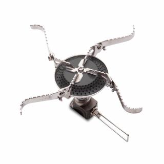 Миниатюрная газовая горелка для резьбовых баллонов. Она легко накручивается на баллон и подойдет для приготовления пищи на 2-3 человек. В сложенном виде горелка помещается в кулак.