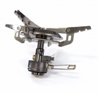 Небольшая газовая горелка с пьезоподжигом для одного-двух человек. Раскрывающиеся лапки позволяют поставить на нее довольно большой котелок. В собранном виде она занимает минимум места, и ее всегда можно брать с собой так, на всякий случай.